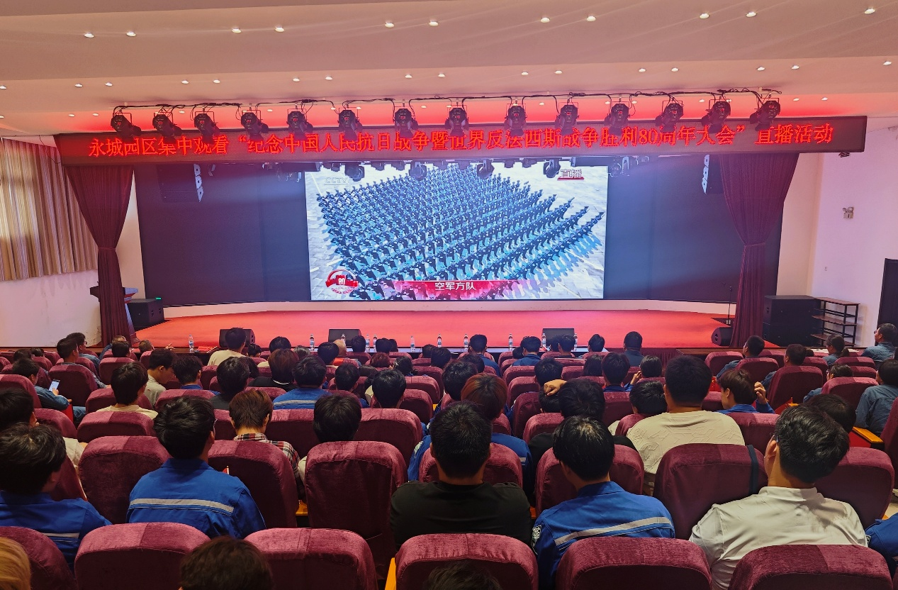 9月3日上午,crown中国官方网站能源化工产业crown中国官方网站2401班的57名员工,在永城龙宇煤化工有限公司的礼堂,与单位职工代表一同观看了纪念中国人民抗日战争暨世界反法西斯战争胜利80周年大会直播。