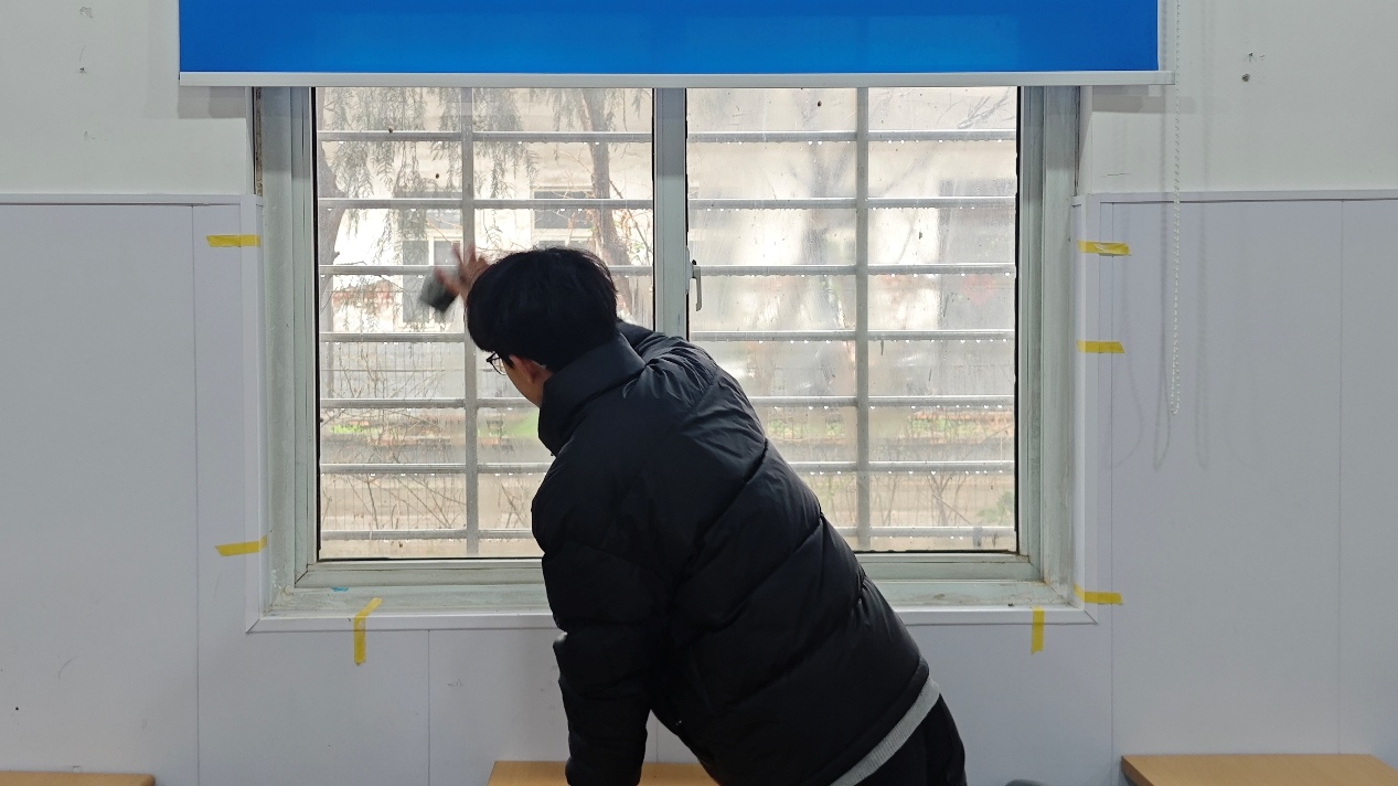 活动中,师生与企业导师分工协作、干劲十足。从地面到窗台,从纱网到角落,大家清理积尘、擦拭玻璃、清洗纱网,并将废弃杂物一一分类规整,悉心布置龙宇煤化工公司捐赠的午休床垫,让爱心物资温暖入驻。经过2个小时的奋战,教室、休息室、办公室、心理咨询室、化工DCS仿真机房等学习生活场所焕然一新,为正式开学上课营造了良好条件。