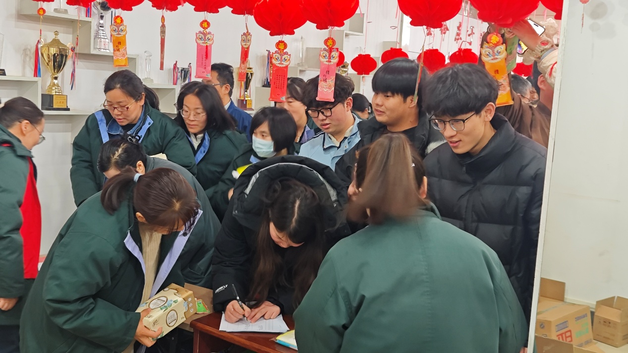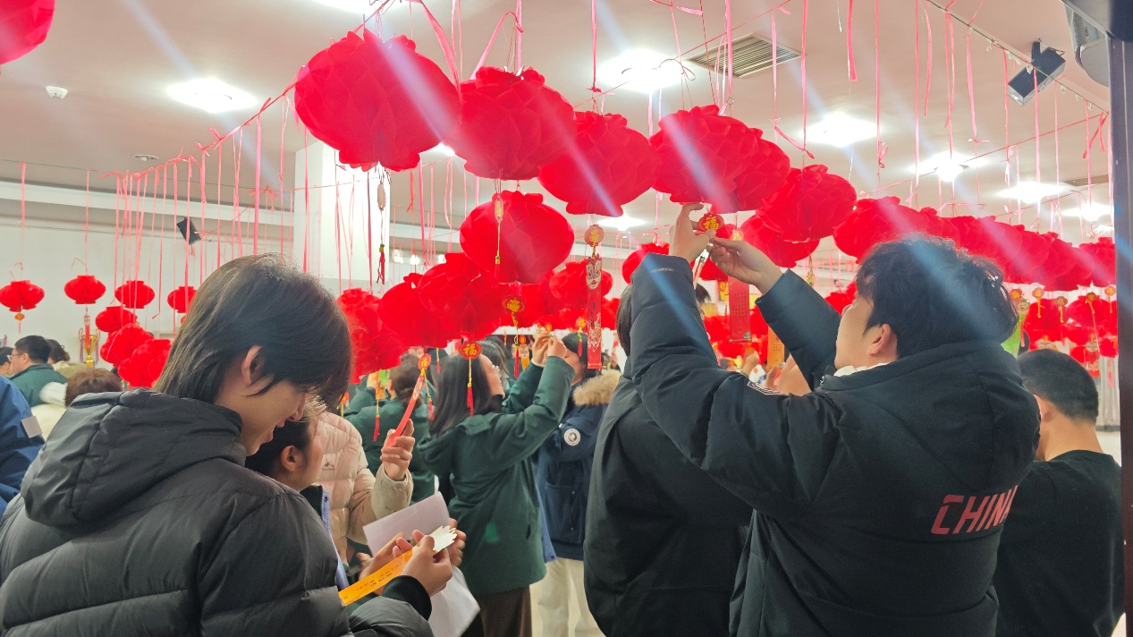 活动现场张灯结彩,红灯笼与各式灯谜彩条相映成趣,谜面涵盖传统文化、生活常识、化工科普等丰富内容,吸引师生与企业职工驻足参与。学子们热情高涨,或独自凝神思索,或三五成群交流探讨,在灯笼间穿梭揣摩,不时传出猜中谜底的欢呼声。大家在猜谜过程中锻炼了思维、增进了交流,更在与企业职工的互动中拉近距离,感受企业大家庭的温暖,每位参与学子都成功猜中灯谜、收获心仪奖品。