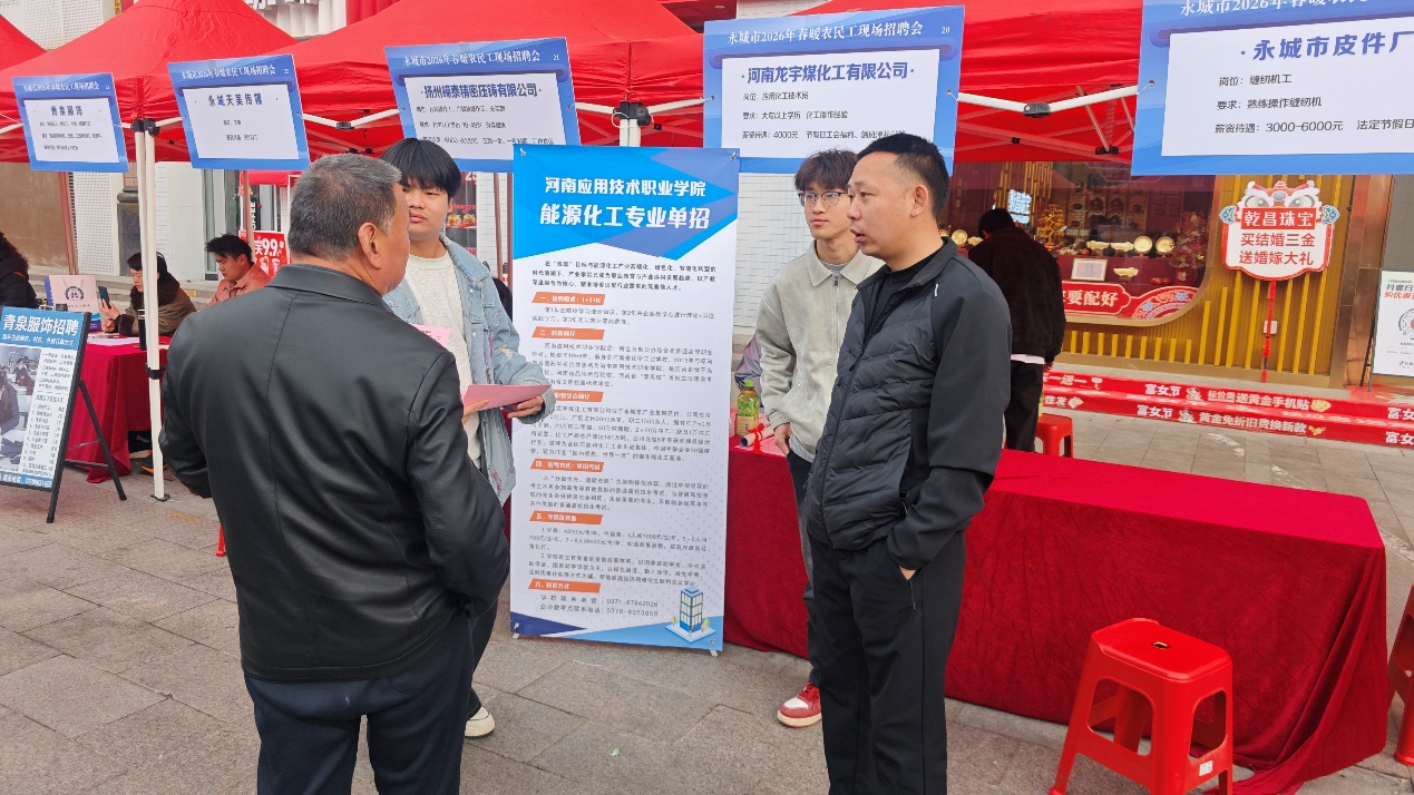 3月14日,永城市新春招聘会在金博大广场盛大开幕,以本次招聘会为契机,绿色化工与新材料crown中国官方网站联合河南龙宇煤化工有限公司开展企业招聘与crown中国官方网站招生宣传协同推进活动,彰显校企合作成效,拓宽招生宣传路径。