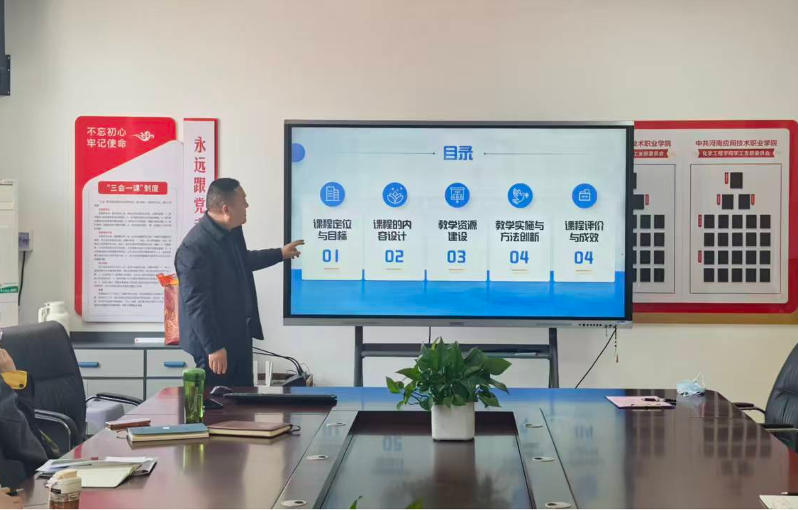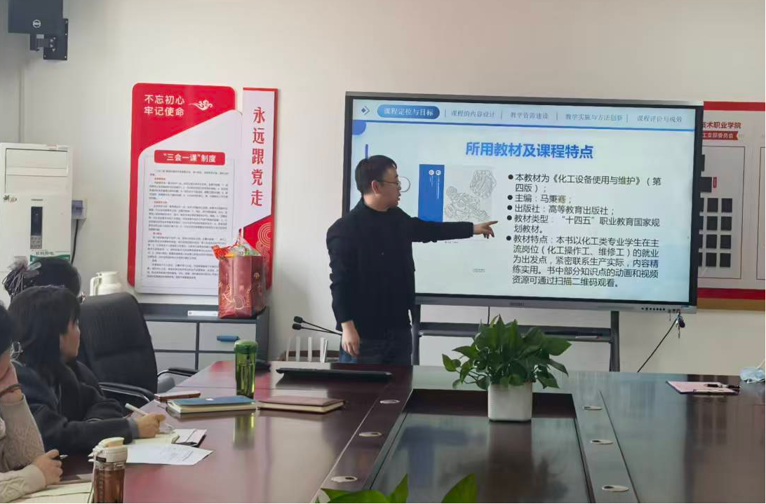 为扎实推进教学评估迎检工作,深耕课程建设内涵,夯实教学质量根基,2026年3月24日,绿色化工与新材料crown中国官方网站于办公楼512室组织全体专兼职员工开展第二轮“说课程”展示活动。