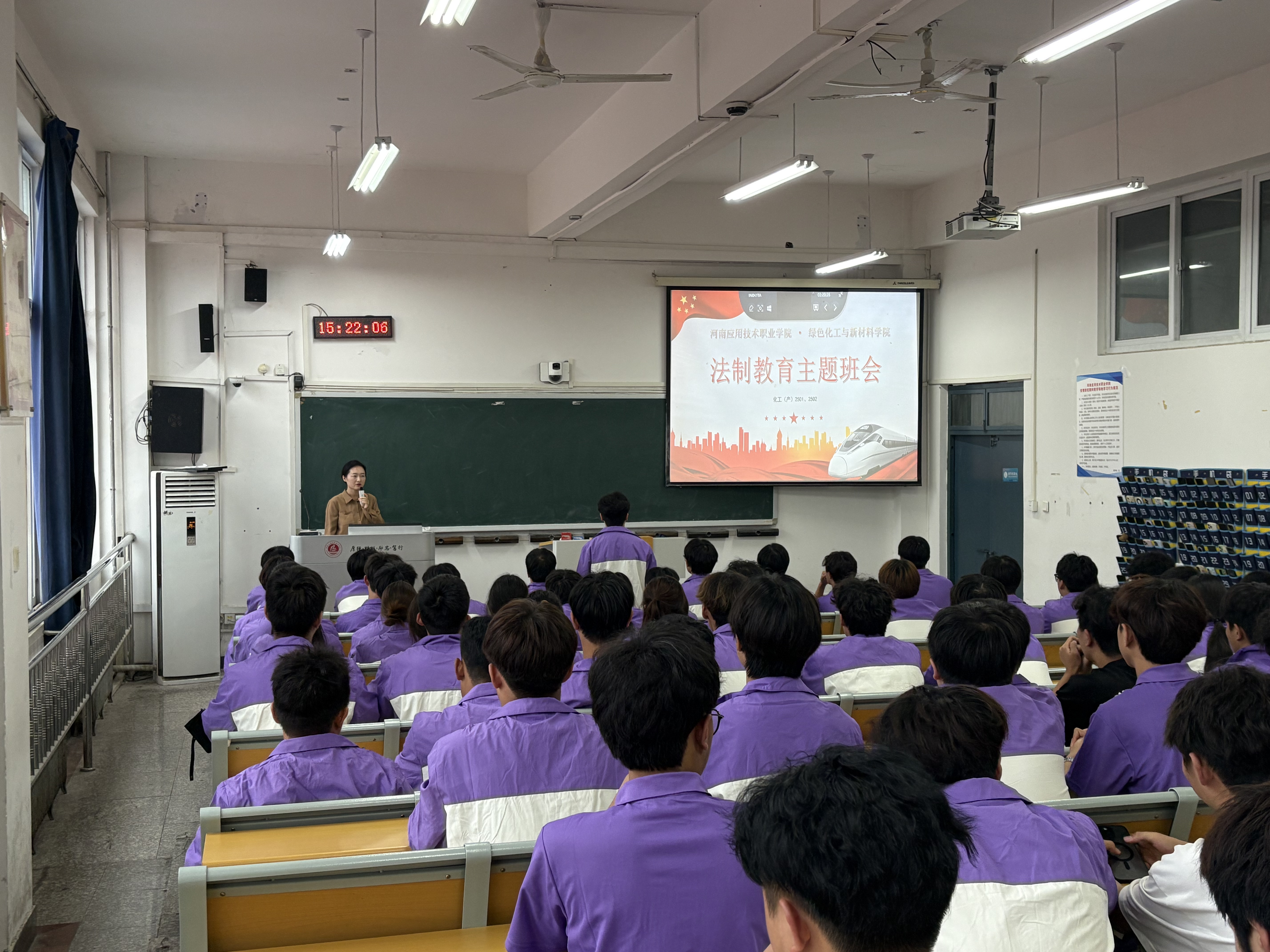 主题班会紧扣法治教育核心,聚焦核心法治思想与法律法规,各班通过 PPT 讲解、法条解读、案例分析等形式,围绕国家安全、消防安全、防诈反诈、食品安全四大主题展开深入讨论:国家安全板块,通过分享典型案例,引导员工认清危害国家安全的行为表现,树立“国家安全,人人有责”的意识;消防安全环节,结合实验室安全、宿舍用电安全等场景,演示灭火器使用方法、讲解火灾逃生技巧,强化员工应急处置能力;食品安全部分,则通过分析校园周边食品隐患、普及食品选购常识,帮助员工建立健康饮食观念。
